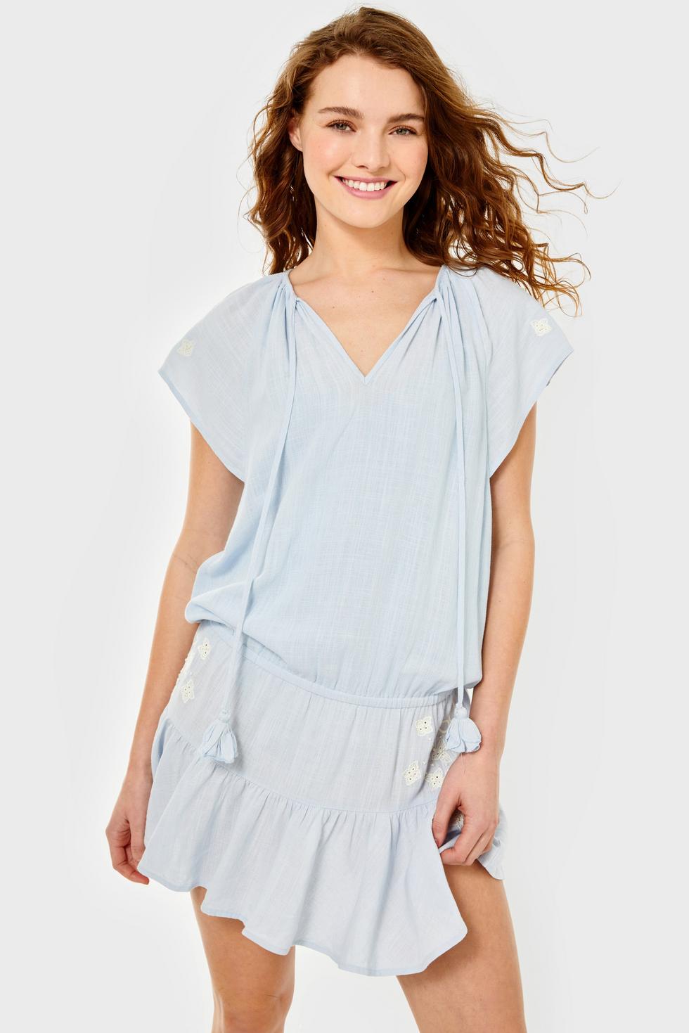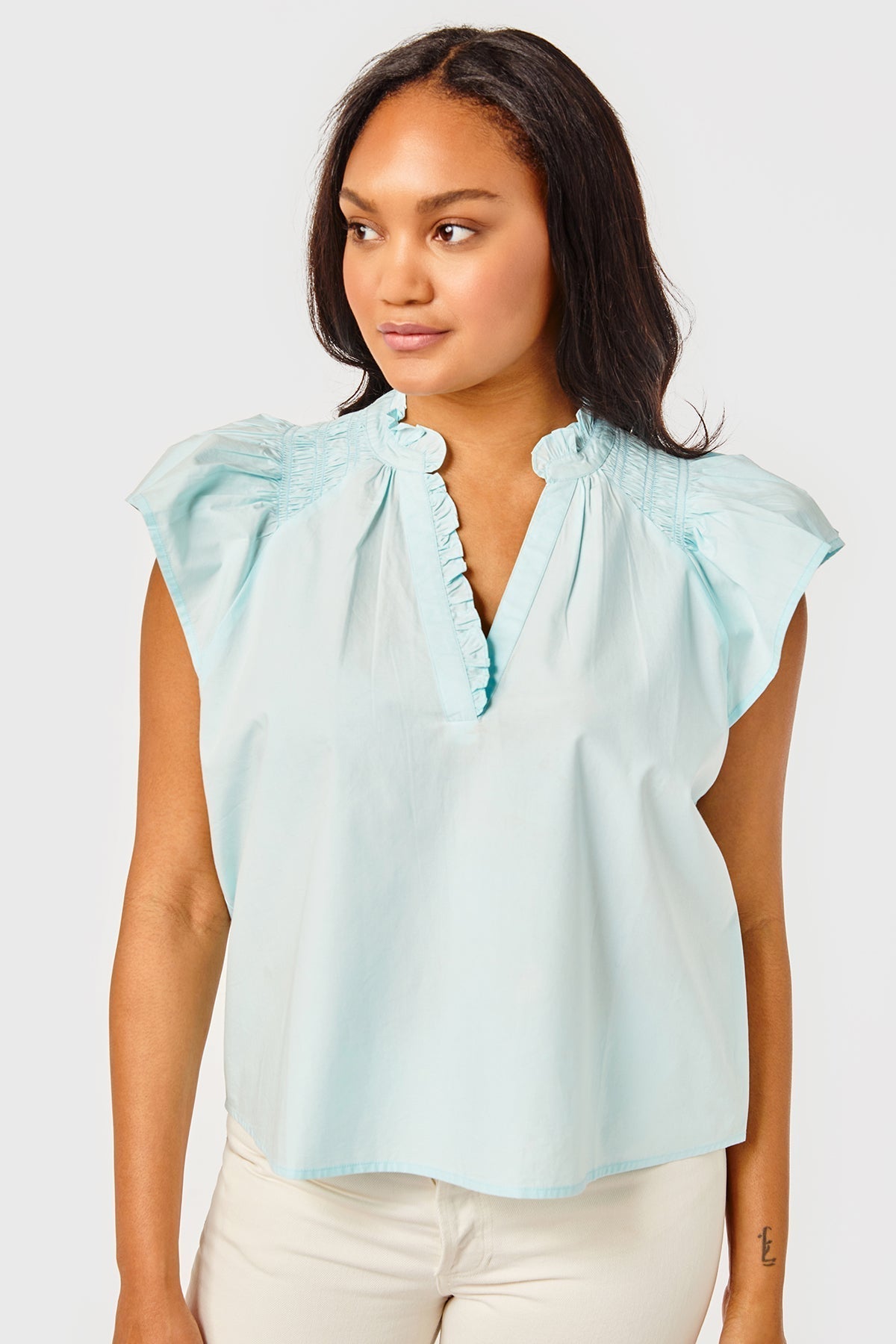 Baby Ruffle Neck Organic Jumpsuit - Chambray